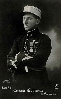 Alfred Heurtaux (1893-1985), pendant son séjour à Courville, le 5 mai 1917, le lendemain de sa 23e victoire, est blessé alors qu’il affrontait seul 9 avions ennemis